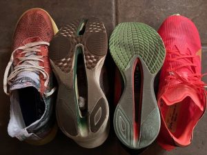 アルファフライは非常に厚底で高下駄履いている感じがあり、なかなかなれません。2,3キロはいてやっと足になじむっていう感じです。これでロングを走ったときに27キロあたりから急激に脚に疲れが生じて一気にタイムを落としあ事があり、非常に印象が悪いです。